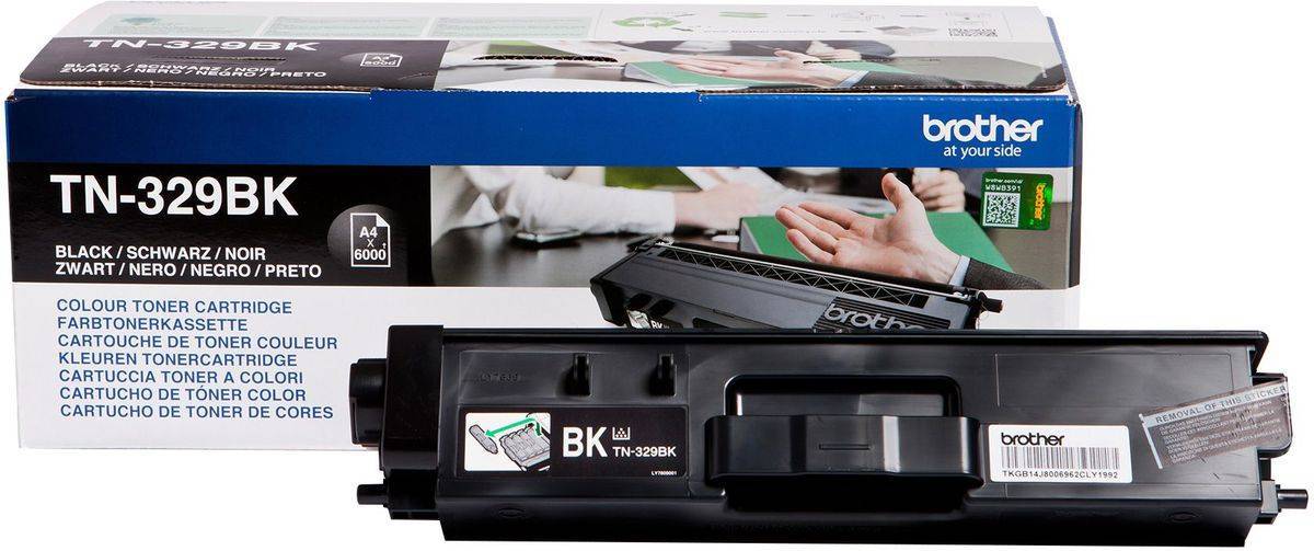 Brother Toner TN-329BK Schwarz mit einer Reichweite für ca. 6000 Seiten.