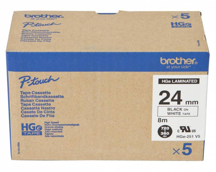 Produktinformationen "Schriftband HGe-251V5 (5 Stk) Schwarz auf Weiß 24 mm x 8 m"