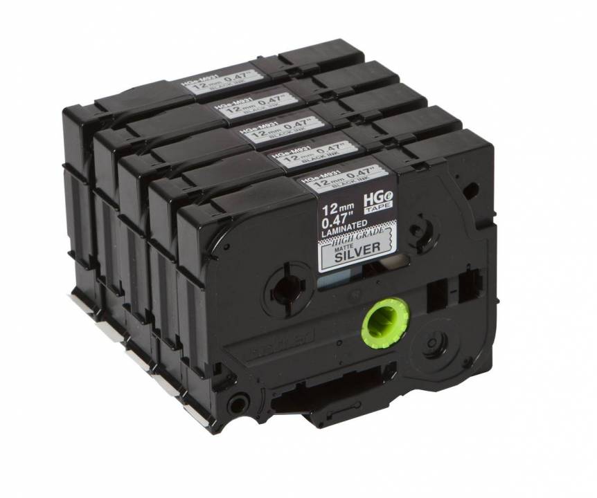 Produktinformationen "Schriftband HGe-M931V5 (5 Stk) Schwarz auf silber 12 mm x 8 m"