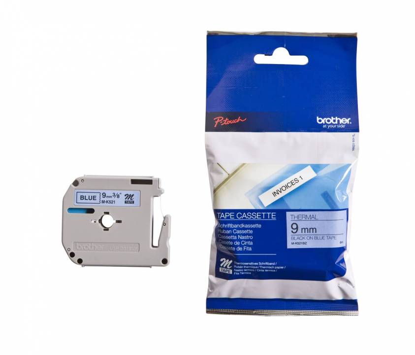 Produktinformationen "Schriftband M-K521 (nicht lam.) Schwarz auf Blau 9 mm x 8 m"