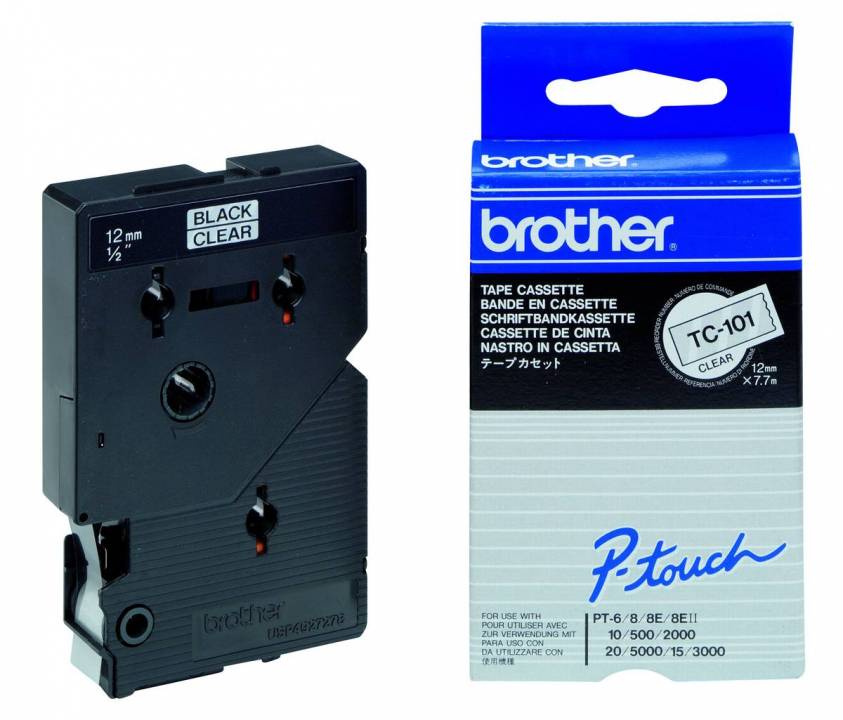Schriftband TC-101 (lam.) Schwarz auf Farblos 12 mm x 7,7 m