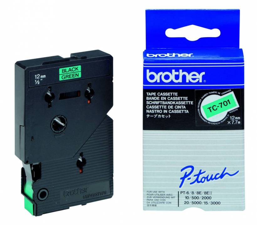 Schriftband TC-701 (lam.) Schwarz auf Grün 12 mm x 7,7 m