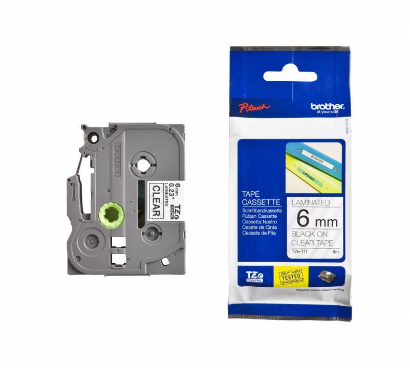 Schriftband TZe-111 (lam.) Schwarz auf Farblos 6 mm x 8 m