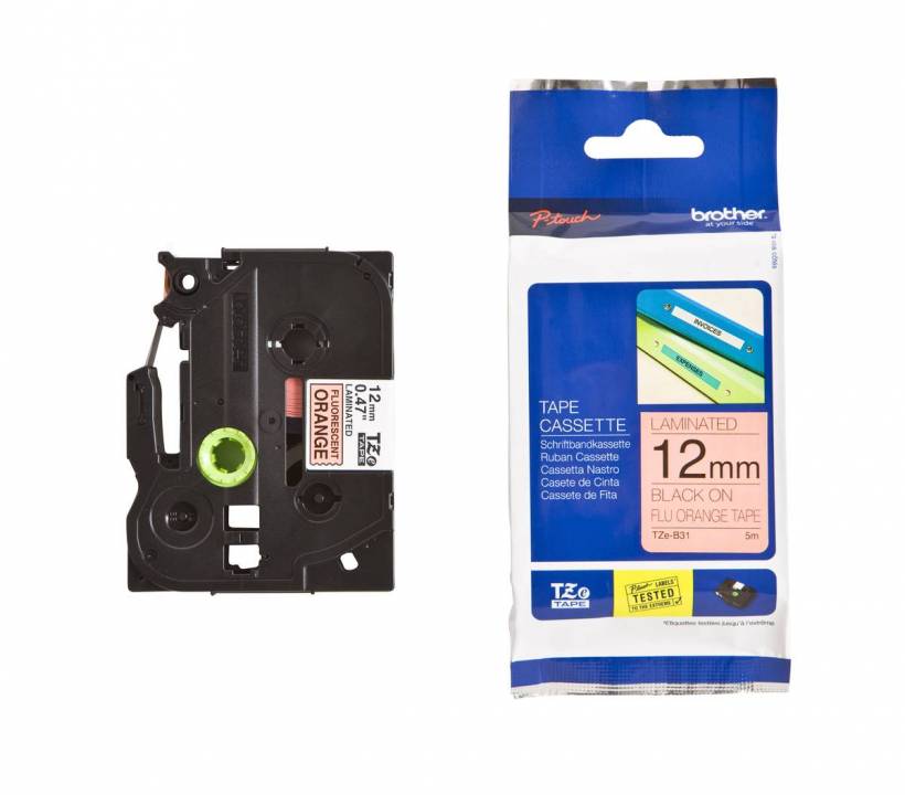 Schriftband TZe-B31 (lam.) Schwarz auf Signalorange 12mm x 5m