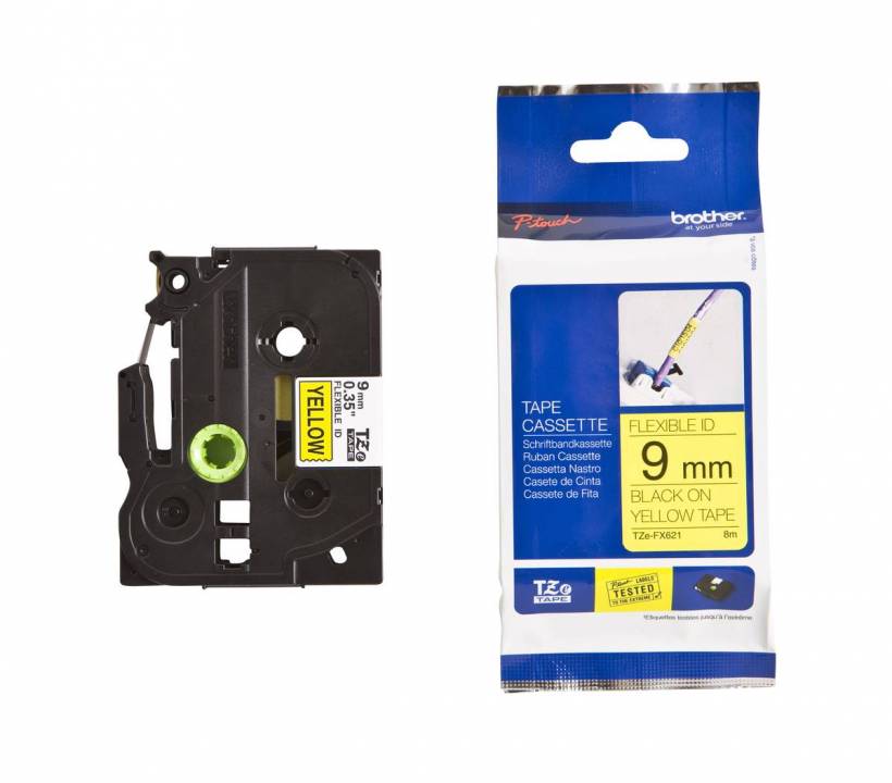 Schriftband TZe-FX621 (lam., flex.) Schwarz auf Gelb 9mm x 8m