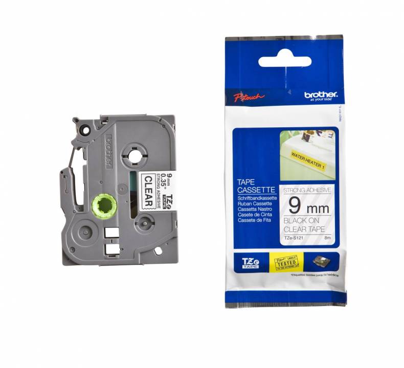 Schriftband TZe-S121 (extra st.) Schwarz auf transp. 9 mm x 8m