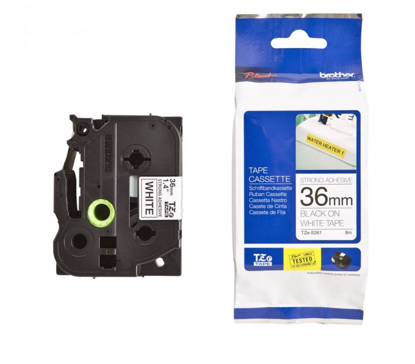 Schriftband TZe-S261 (extra st.) Schwarz auf Weiß 36 mm x 8 m